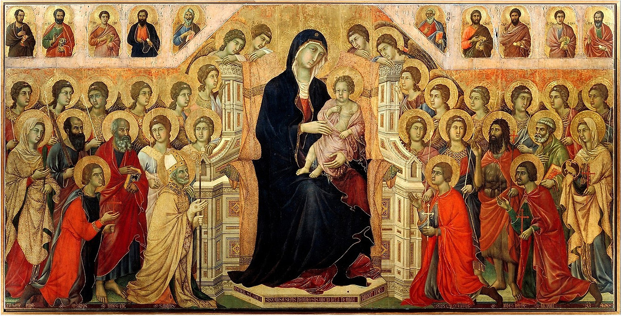 두치오 디 부오닌세나 <마에스타 /천사와 성인들과 함께 있는 성모 마리아> 1308-1311. 나무판에 템페라, 214X412cm. 메트로폴리탄 오페라 박물관, 시에나, 이태리.