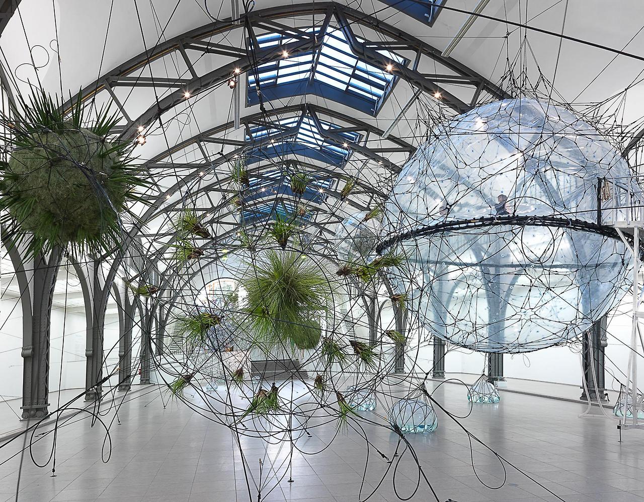 2,500제곱미터 규모의 그물 구조물 안에 공기로 채워진 다섯 개의 "구체"가 배치되어 있다. 이 설치물은 초현실적인 풍경, 구름 바다, 또는 무중력 행성들이 떠다니는 우주 공간을 연상시킨다. 방문객들은 설치물을 타고 올라가 탐험할 수 있다. 용감하게 안으로 들어간 사람들은 아래에 있는 박물관 방문객들을 마치 모형 세계를 거니는 작은 인형들처럼 관찰할 수 있다. 반대로 슈텐데하우스의 광장과 메자닌에서는 그물 안에 있는 사람들이 마치 하늘에 떠 있는 것처럼 보인다. 작가는 새로운 VR(가상 현실) 작품을 통해 '궤도 속'의 상호작용 요소를 더욱 발전시켰다.