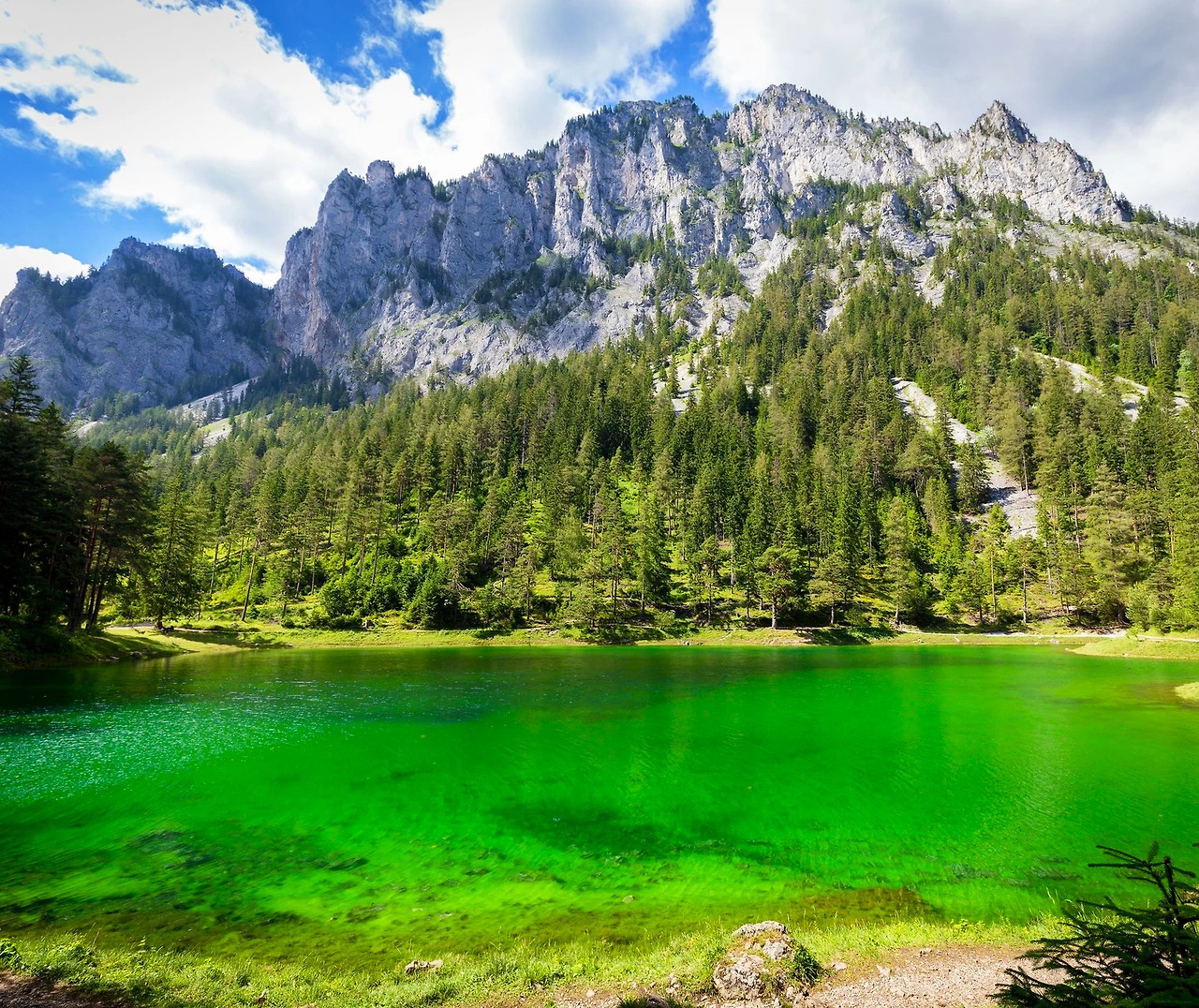 왼쪽 - 룽거른호수(옵발덴 주), 스위스. 오른쪽 - 그린호수(슈타이어마르크 주), 오스트리아.