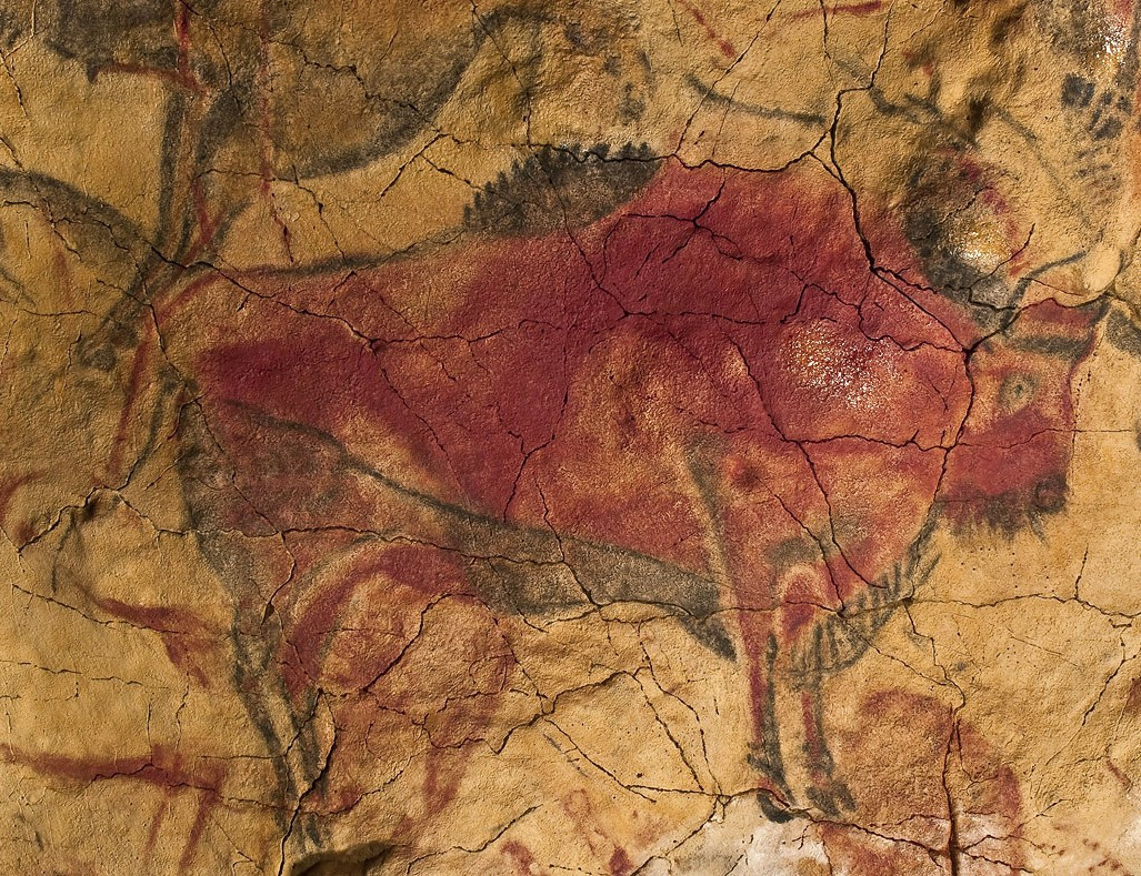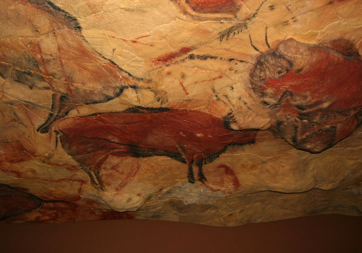 오른쪽 - 알타미라 동굴벽화, 마그달레니아 다색 들소. 산티야나 델 마르, 스페인