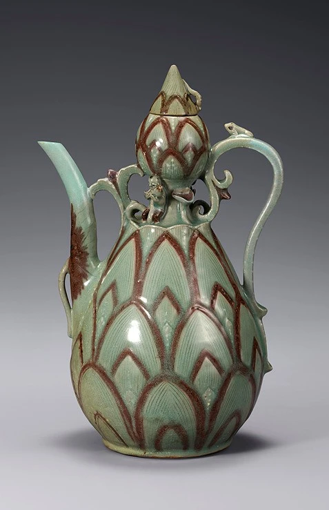 왼쪽 - 청자동채 연화문 표형 주자. 고려, 13세기. 점토(粘土), 높이 32.5cm. 국보. 리움미술관, 한국
