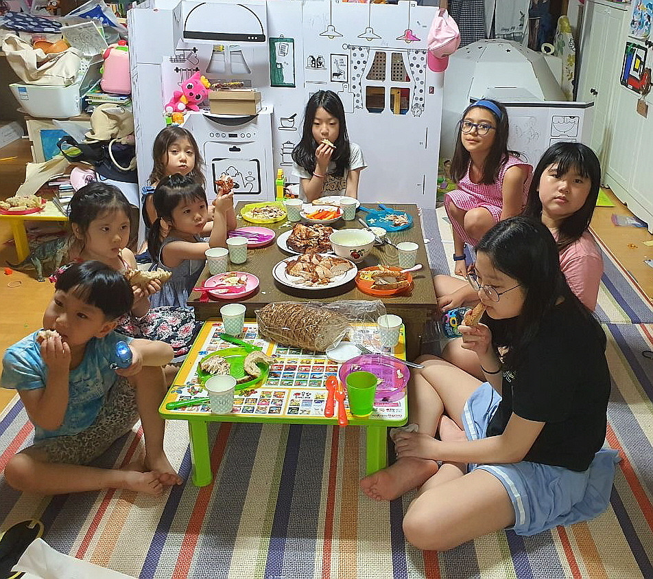 잠자리가 부족하여 큰 며느리가 아이들 넷을 데려가서 재우고 아침에 다시 우리집에 모여 놀았다.