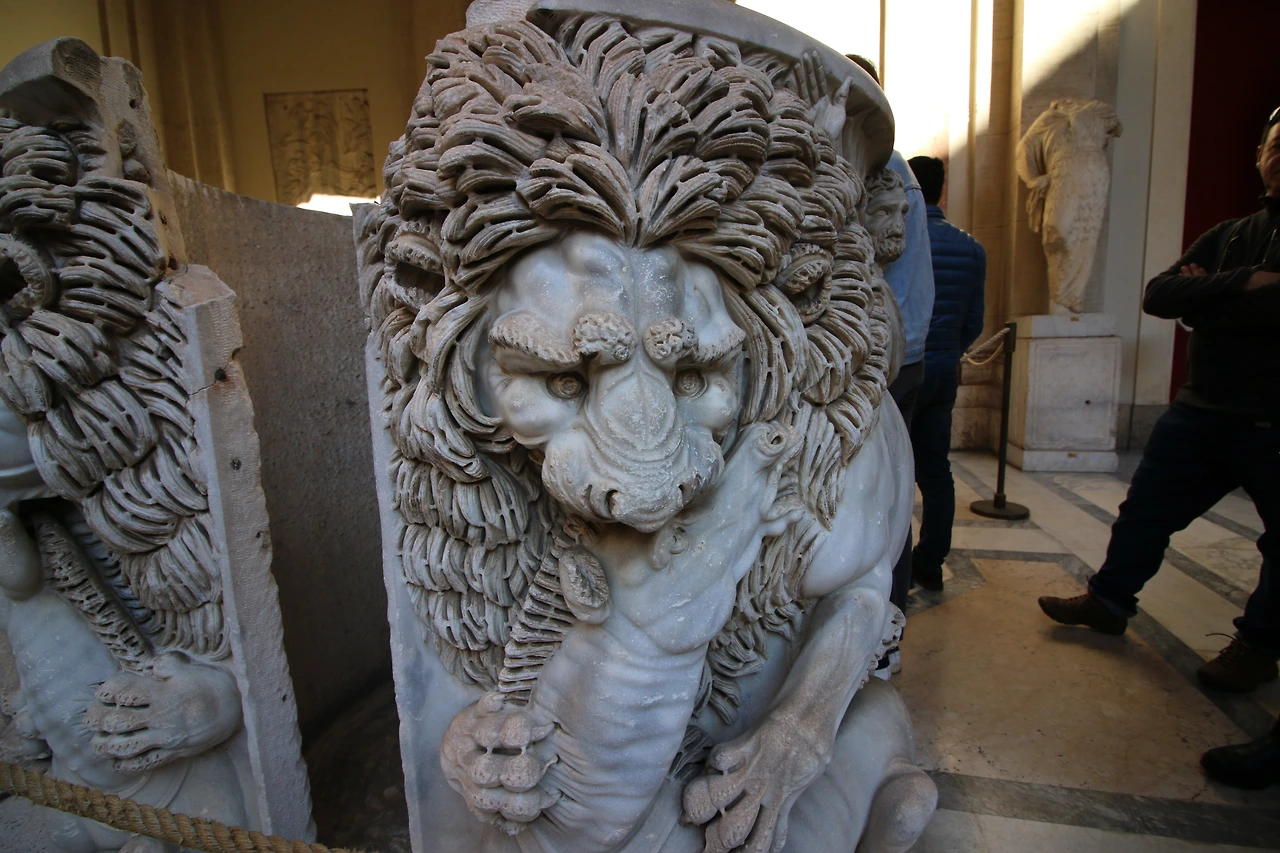 그리고 이 라오콘 상을 둘러싼 여러 조각들과 욕탕들이 있는데 그런 것들을 둘러보는 것도 기분이 좋았습니다. 아래의 작품을 보시면 사자의 갈기와 찡그린 눈 특히, 콧잔등이 꽤나 섬세하게 표현되어있고, 발톱으로 먹이의 목을 움켜쥐고 있는 모습이 꽤나 디테일 하죠. 게다가 이 사자는 눈동자도 있어요!