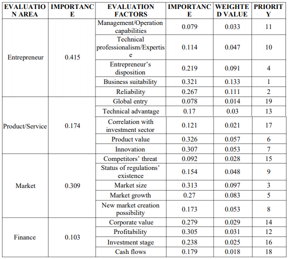 투자 의사결정에 대한 세부 요인별 영향 값 분석 결과 두 집단 전체에게 요구되는 역량 요인으로 1순위 비즈니스의 적합성, 2순위 신뢰성, 3순위 시장 규모, 4순위 기업가적 성향, 5순위 시장 성장성 순으로 높게 나타났다.