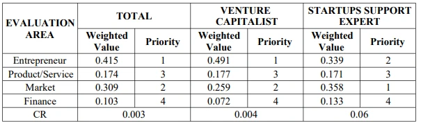 반면 재무적 요인에 대한 중요도는 두 집단 모두 가장 낮게 도출되었는데 초기 단계 기업의 경우 투자 의사결정에 사용 가능한 재무적 데이터의 부족으로 투자에 대한 위험도와 신뢰성을 측정하는 것이 어렵기 때문이다.