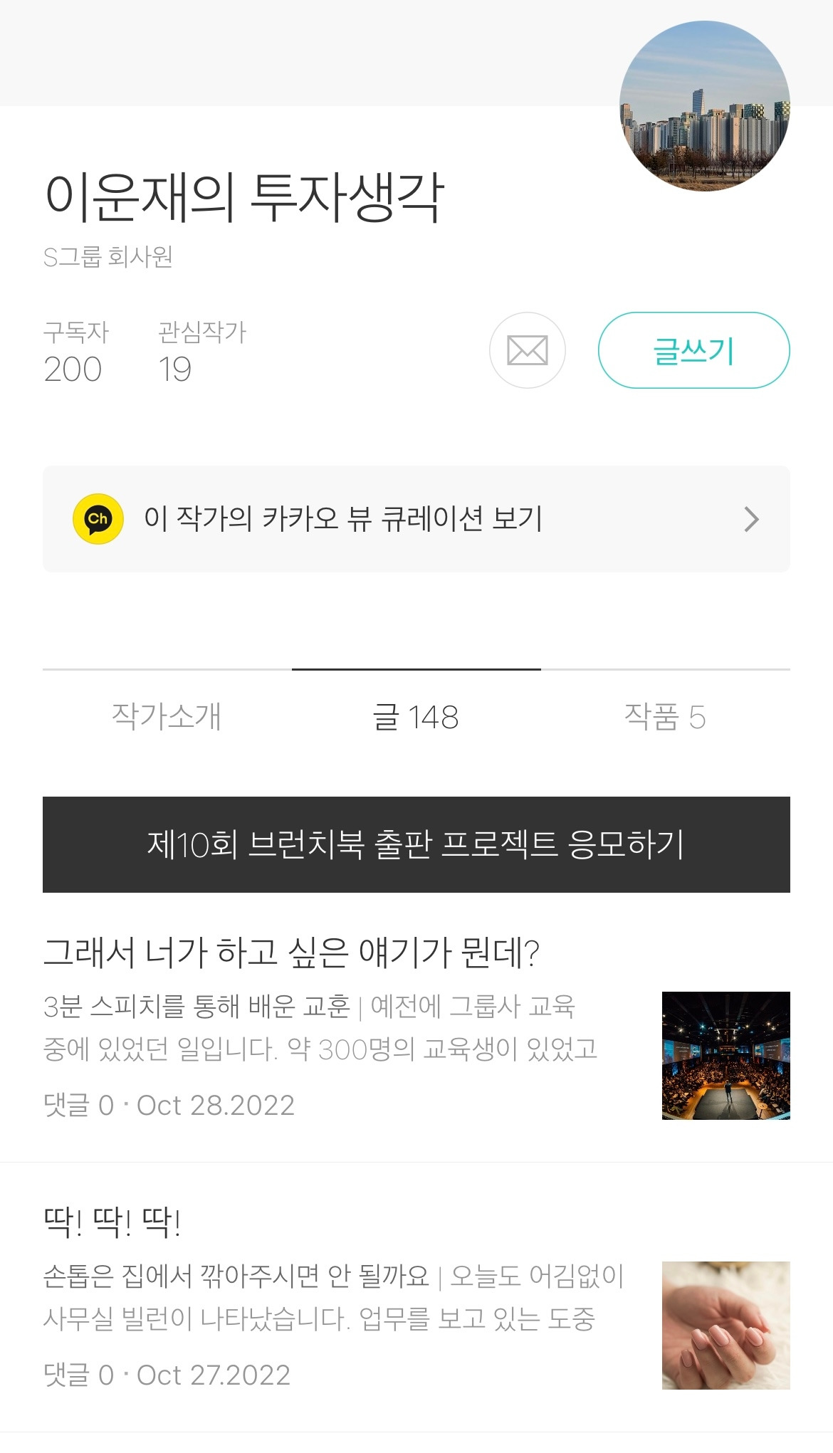 앞으로는 구독자 300분을 넘어 내년에는 1000분까지 달성하는 게 제 목표이고 결국에는 책을 출판하는 게 제 목표입니다. 무엇보다도 제 글이 구독자분들께 인사이트가 되어야 하고 삶에 도움이 되어야 합니다. 구독자분들께 조금이라도 도움이 될 수 있는 <이재운의 투자생각>으로 거듭나도록 열심히 노력하겠습니다. 잘 지켜봐 주시면 감사드리겠습니다.