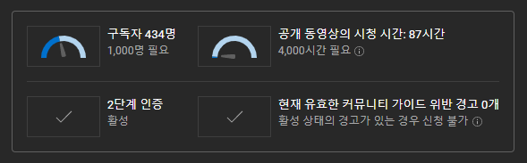 7년 전에 저는 유튜브를 시작했었습니다. 악기를 하나 다룰 줄 알았는데, 이 걸 혼자만 하는 게 아니라 유튜브에 공개하면서 하면 재밌겠다는 생각이 시작이었습니다. 그렇게 하나 둘 영상을 올리기 시작했고, 지금까지 37개의 영상을 올렸습니다. 그래도 조금의 관심을 가져주시는 구독자분들 덕분에 434명의 구독자를 보유하고 있습니다. 그래도 유튜브를 시작했으니 구글 애드센스를 달아서 광고수입을 좀 얻어보고자 하는 것도 목적이었습니다. 그러나 1,000명 이상의 구독자가 필요했고 4,000시간 이상의 시청시간이 요구되었습니다. 구독자도 모자랄뿐더러 시청시간도 4,000시간에 대비해서 87시간으로 턱 없이 모자란 시간입니다.