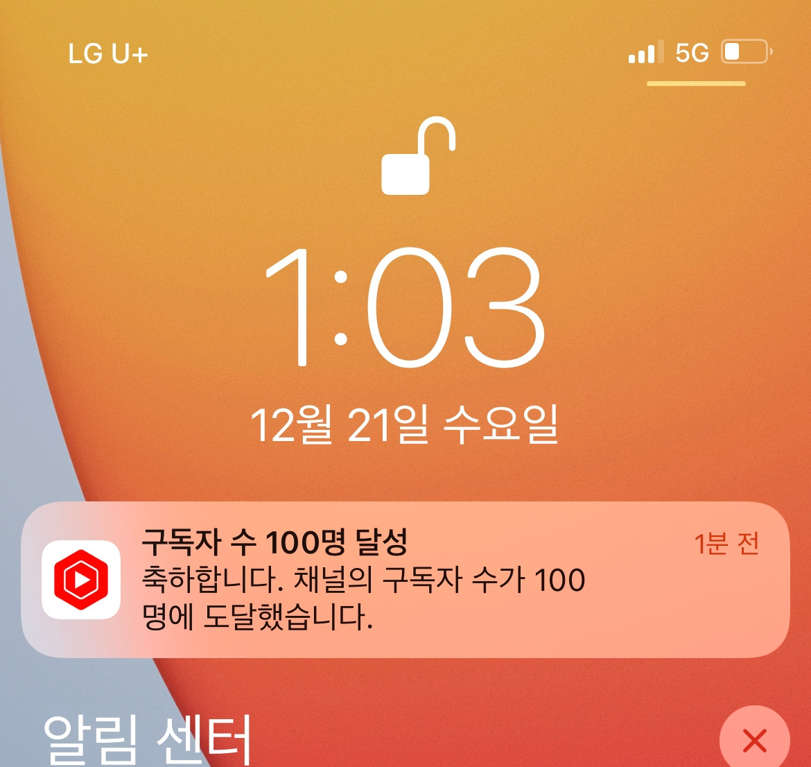 오늘은 유튜브 채널의 구독자 수가 100명이 됐다는 알림이 도착했습니다. 유튜브 구독자 100명이 되기까지 큰 노력이 들지 않았습니다.