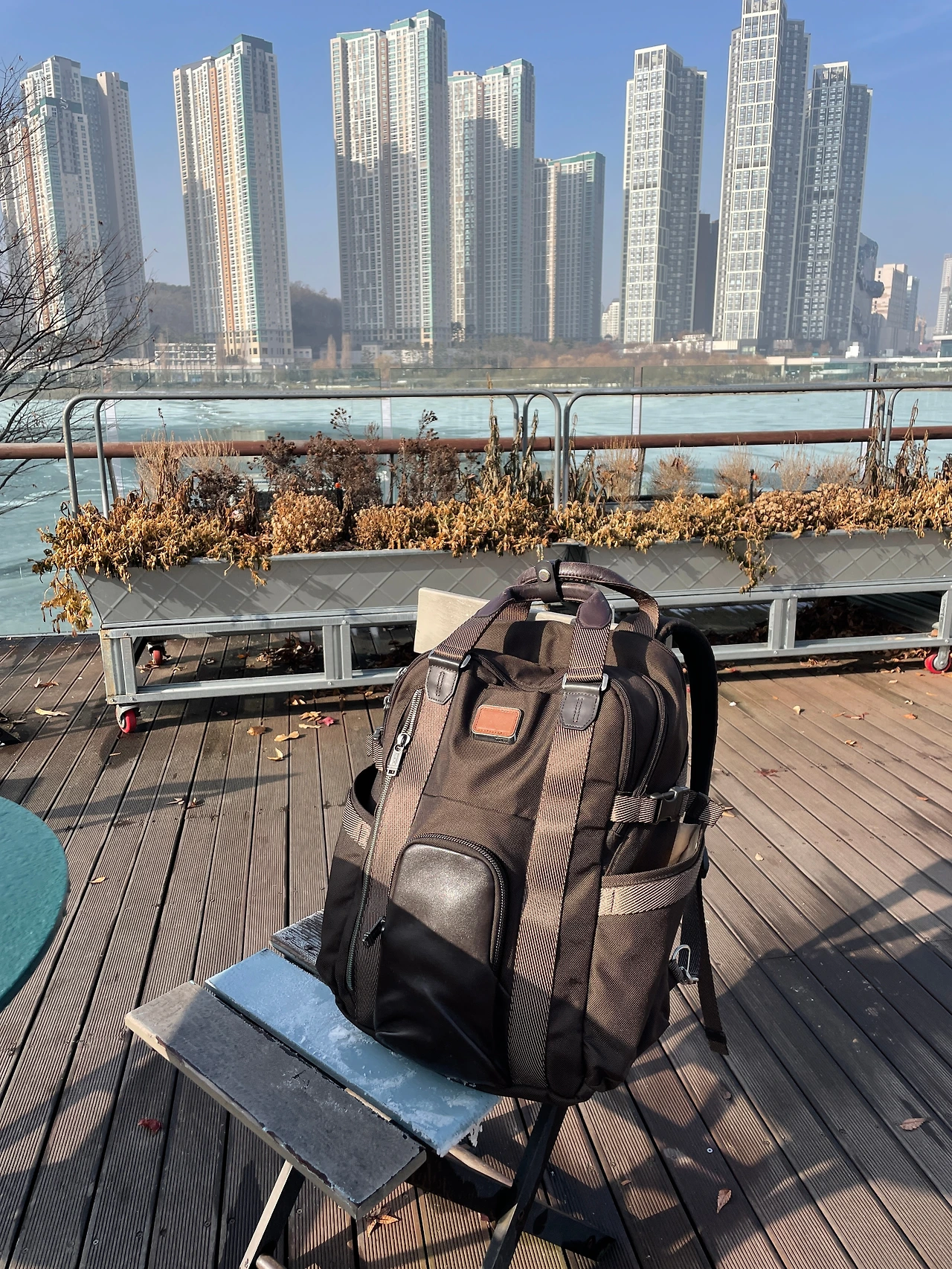 그래서, 오래 써야 하는 중요한 물건들을 살 때는 가급적 내구성도 좋고 대중들에게 이미 평가가 좋은 제품을 사시길 권유드립니다. 좋은 걸 사서 오래 쓰면 그게 남는 겁니다. 좋은 걸 쓰면 쓸 때마다 기분이 좋고 그리고 또 그 물건을 통해서 부가가치를 창출해 낼 수 있습니다. 아래 보이는 가방은 TUMI 가방인데요. 제가 해외 출장을 갈 때 면세점에서 산 가방이니 아마 그때 가격이 60만 원인가 그랬습니다. 그때가 2017년 정도 됐었는데 벌써 5년이 지났네요. 5년 동안 다른 백팩은 한 개도 사 본 적이 없습니다. 이 가방을 너무나도 잘 쓰고 있기 때문이죠. 거기에 더불어, 5년 동안 물건을 자주 썼음에도 불구하고 아직도 새것처럼 멀쩡합니다. 이 가방을 보니 그때 가슴 벌렁벌렁하며 샀던 좋은 가방이 지금에 와서는 너무나도 잘 한 소비라구나라는 생각을 하게 됐습니다.
