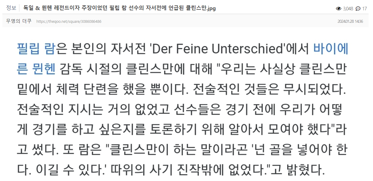 이뿐만이 아니다. 바이에른 뮌헨에서 한 때 엄청난 활약을 펼쳤던 필립람은 자서전에서 이렇게 밝힌다.