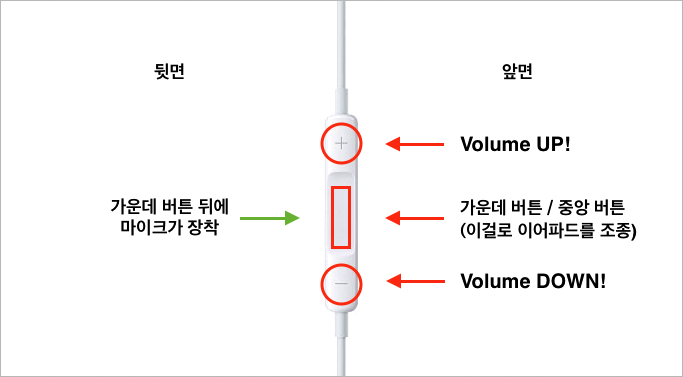 • 곡 건너뛰기: 이어파드 가운데 버튼을 빠르게 두 번 누르며 마지막 두 번째는 길게 꾹 누르기