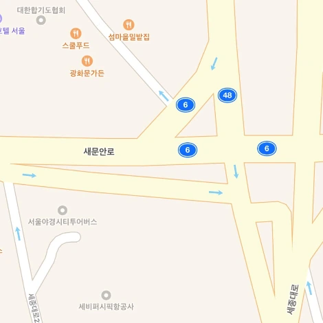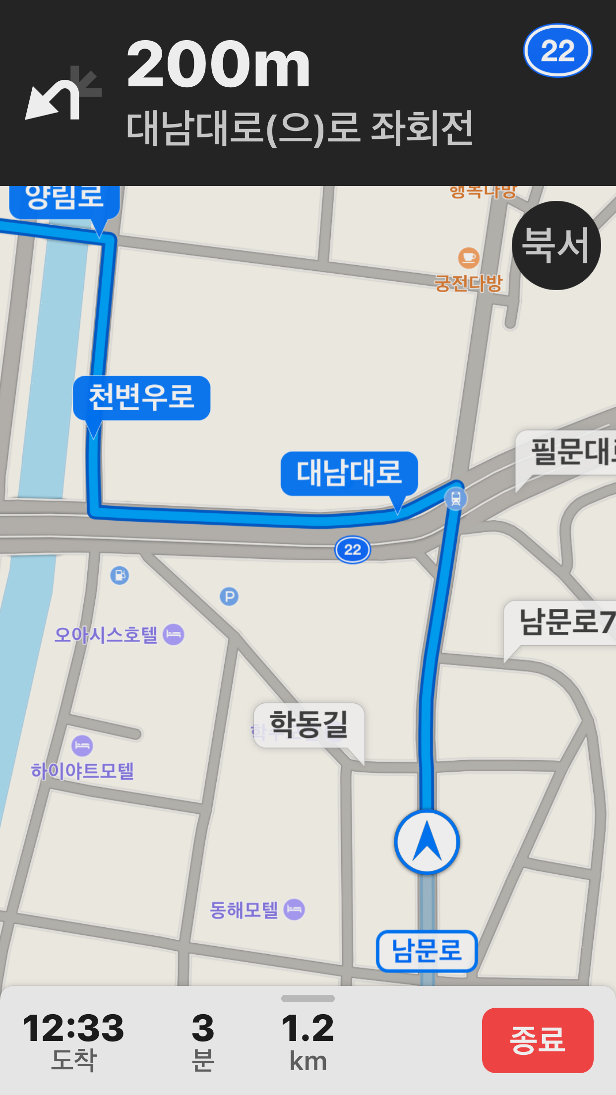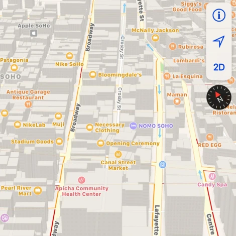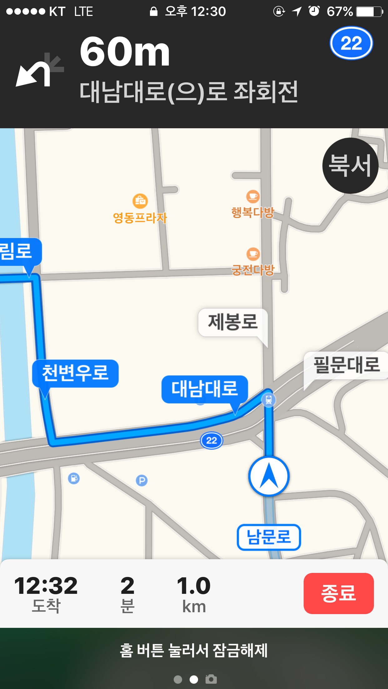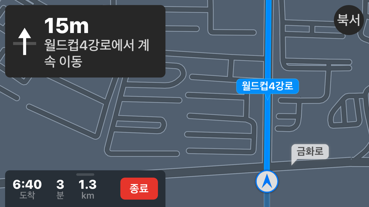 3D로 건물을 보여주지 않는 단점도 있는데, 내비게이션뿐만 아니라 한국의 애플 지도는 현재 3D가 지원되지 않습니다. (2017년 1월 기준) 그러나 내비게이션의 기능으로 반드시 필수적인 요소는 아니라고 생각합니다. 3D가 화려하기는 하나 2D로도 충분히 실용적인 경로 안내를 수행할 수 있습니다.