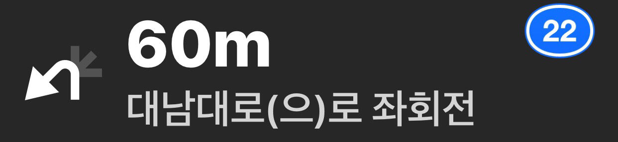 애플 지도는 내비게이션으로서 기타 다른 기능들도 충실히 수행합니다. 경로를 이탈하여 일부러 다른 길로 들어서니, 실시간으로 경로를 다시 계산합니다. 음성 디렉션 기능도 있어서 턴 바이 턴 디렉션에 맞추어 방향을 언제 바꾸어야 하는지 미리 말해줍니다. 화면이 잠긴 상태에서도 경로 안내는 계속됩니다. 또한, 일방통행길을 하늘색 화살표로 표시해줍니다.