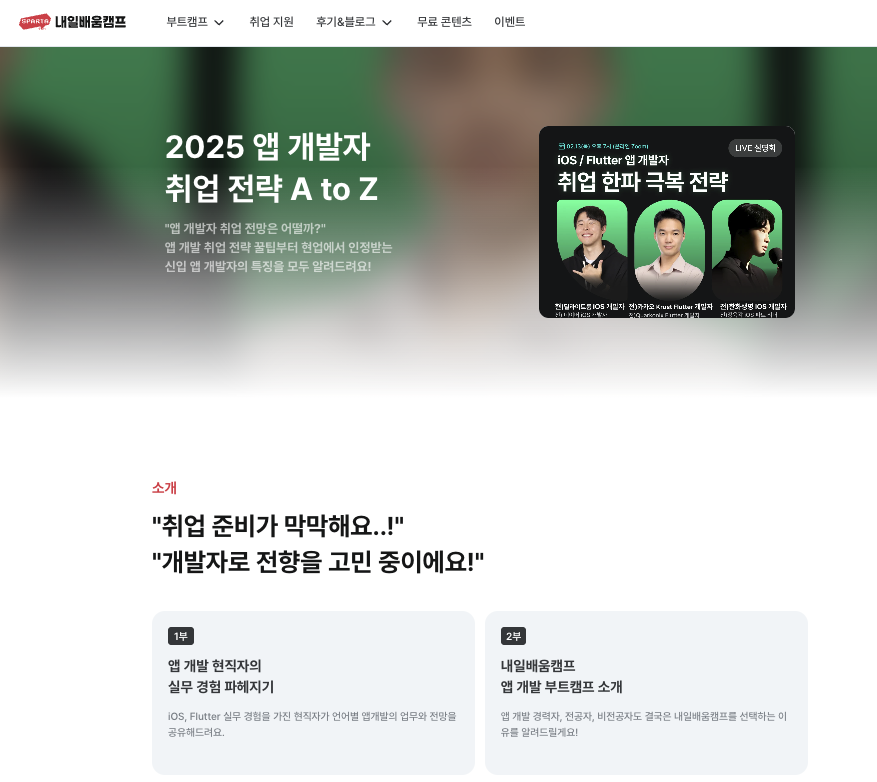 카카오, 정육각, 한화생명 등 굵직한 기업 출신의 실제 내일배움캠프 튜터 개발자님들을 섭외하여,