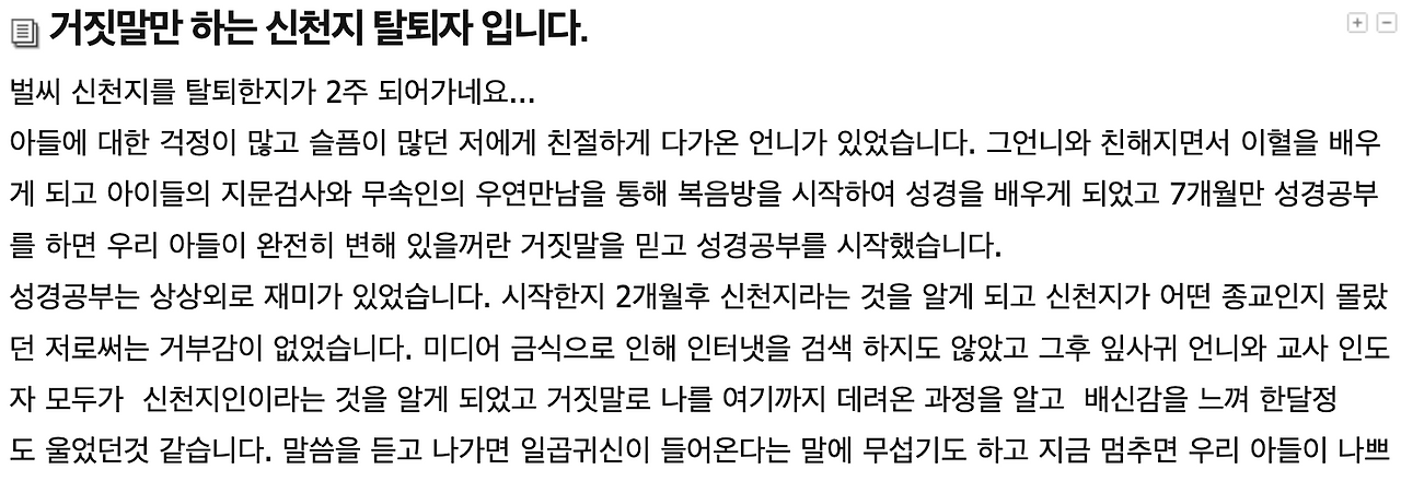여기까지, 신천지의 모집 전략을 다루는 첫 글은 마무리하겠습니다.