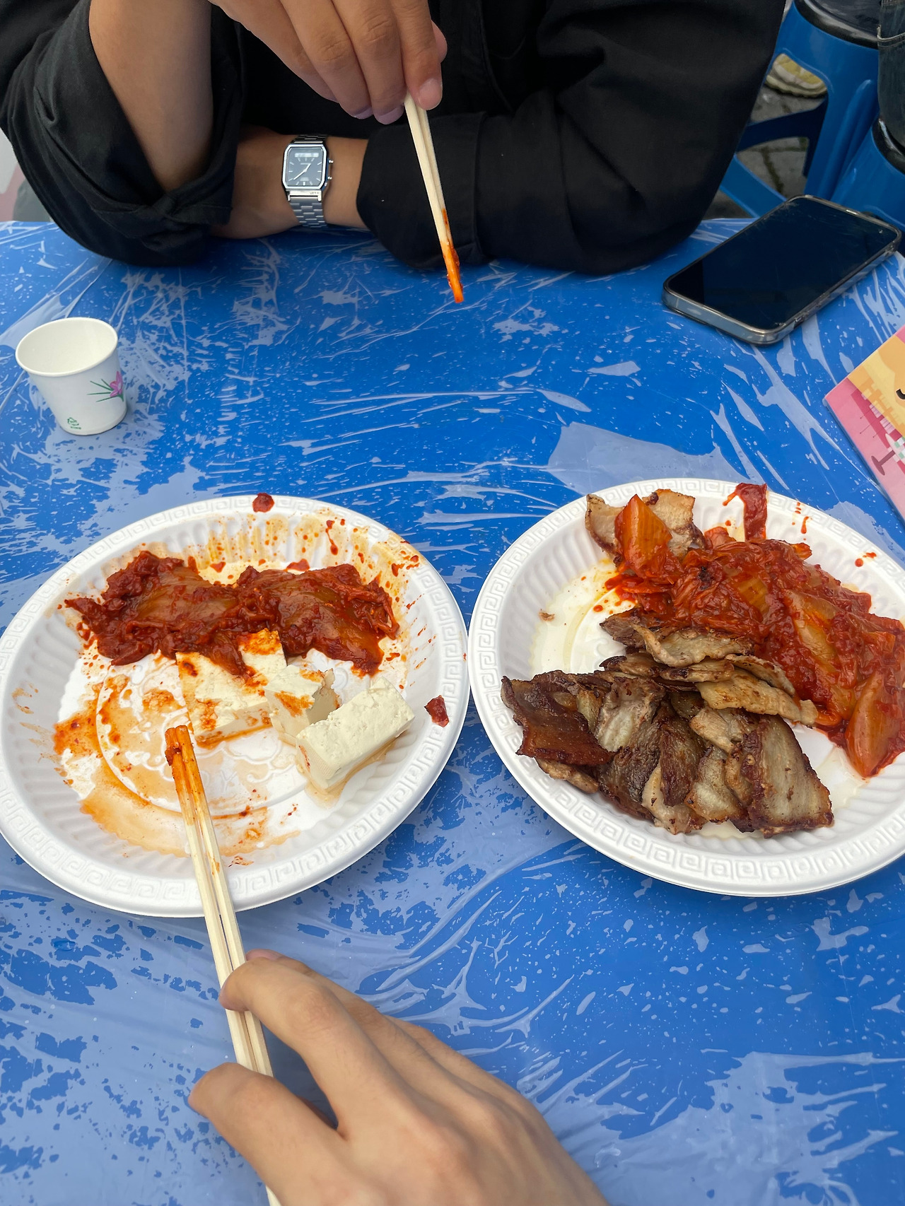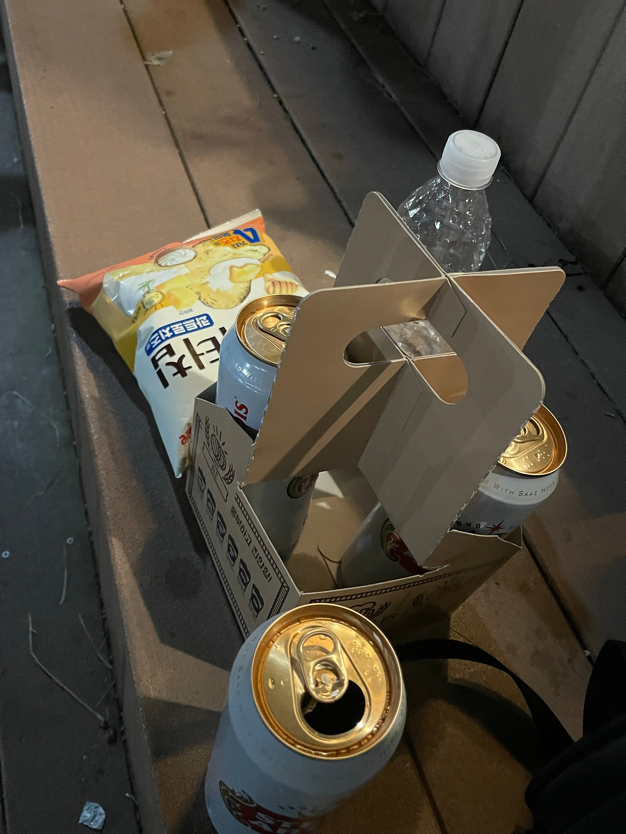 자리가 없어 계단에서 과자에 맥주만 먹더라도,