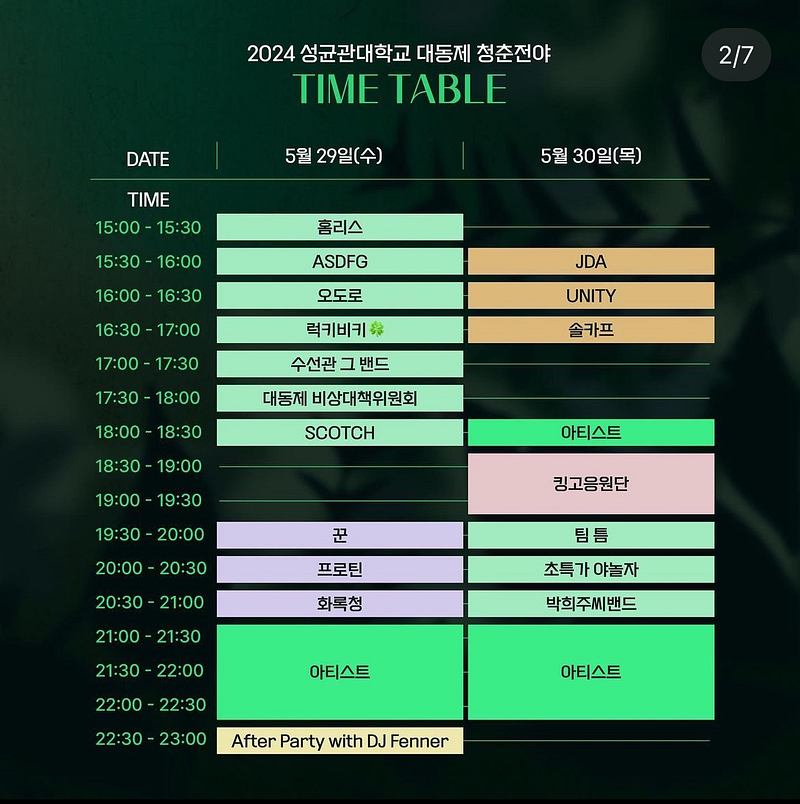 이번 축제 기간 동안 4월 29~30일 동안 재학생의 신분으로 성균관대학교 축제,