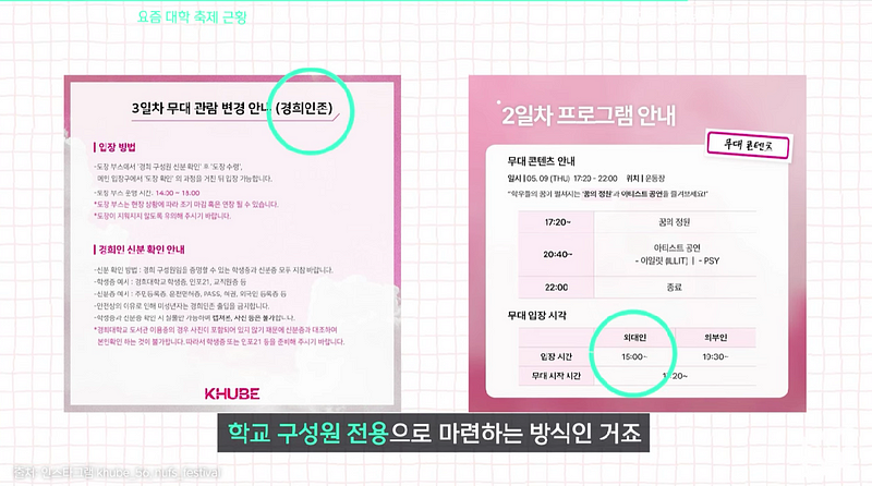 경희대학교도 그렇고, 에스파와 데이식스가 찾아온 성대 축제에서도