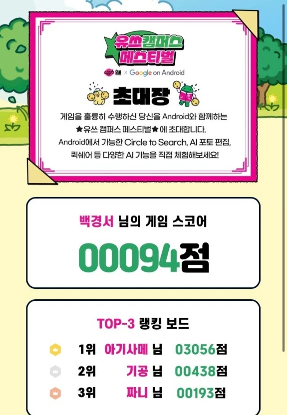 구글 안드로이드와 LG 유플러스가 자체 개발한 AI 기능을 체험할 수 있는 기회를 게임으로서 제공하고 있으며,