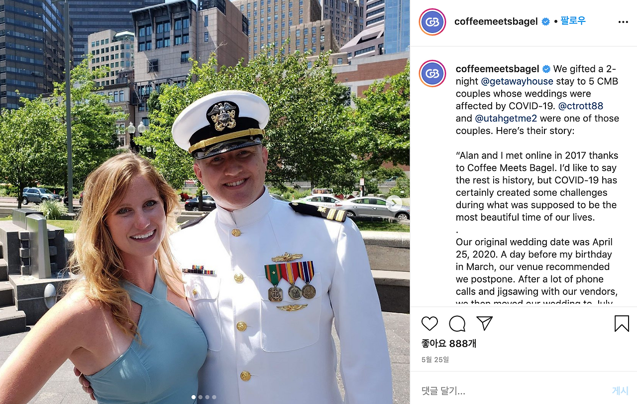 재미있게도 공식 인스타그램 계정(https://www.instagram.com/coffeemeetsbagel/)에서 성공 러브스토리와 데이팅 팁을 볼 수 있으니 참고해보자.