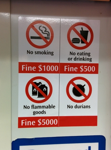 싱가포르 생활 초기 시절, 밖에서 땀을 뻘뻘 흘리다 시원한 MRT에 타서는 별생각 없이 물을 마시려고 할 때였다. 옆에 앉아있던 싱가포리언 아주머니가 아주 단호하게 "No drinking!"이라고 했던 게 기억난다. 지금 생각해도 무안한 장면인데... 그때 이후로는 아무리 목이 말라도 괜히 또 한 소리 들을까 싶어 참곤 했다. 다른 편에서도 이야기하겠지만 싱가포르에선 하지 말라면 그냥 안 하는 게 본인에게 이로모로 좋다.