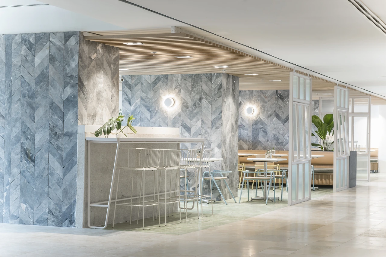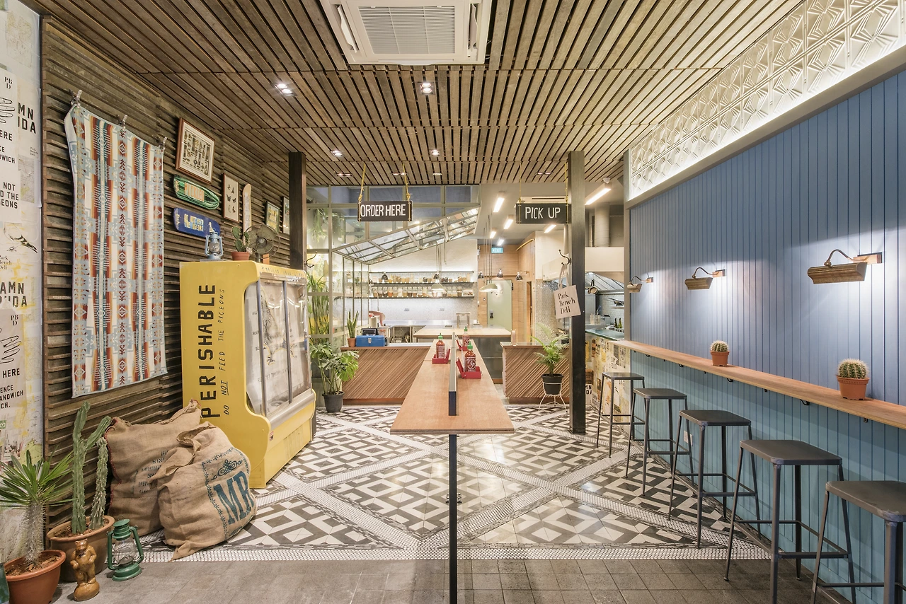 클리포드 피어 프로젝트가 마리나 베이의 럭셔리 레스토랑이라면 파크 벤치 델리는 현지인들 사이에서 통하는 샌드위치 맛집. 미국의 캐주얼한 델리를 컨셉으로 따뜻하면서도 아늑한 분위기와 키치한 굿즈 디자인이 이곳의 트레이드 마크가 되었다. 비둘기에게 먹이를 주지 말라는 위트 있는 멘트도 하나의 디자인 요소로 사용되었다.