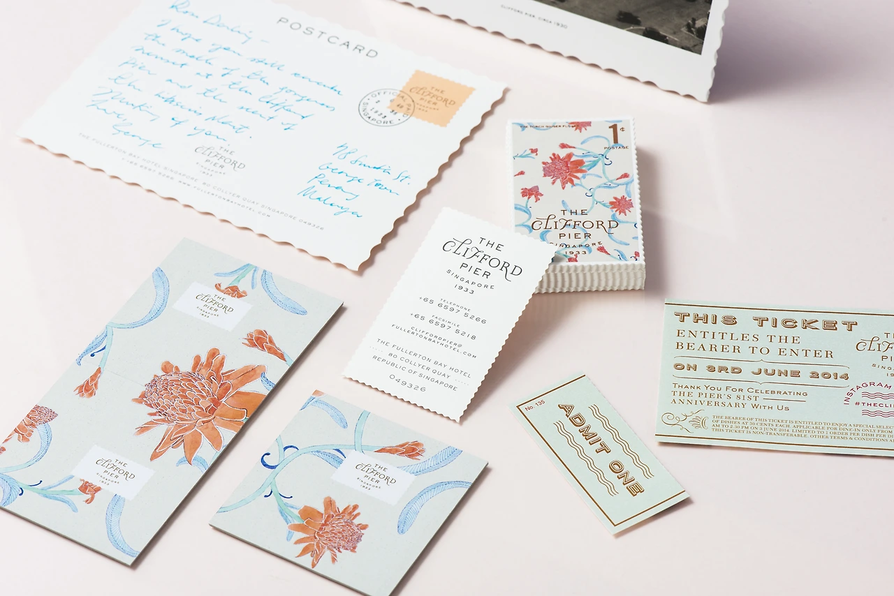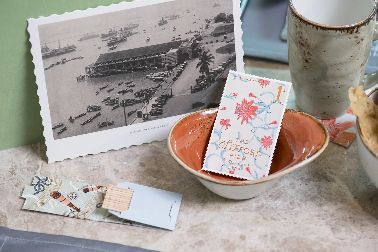 1930년대 국제적 무역항 역할을 했던 마리나 베이를 기념하기 위해 가져온 모티프는 싱가포르의 트로피컬 한 자연에 매료되었던 스코틀랜드 출신의 동인도회사 직원 윌리엄 파커. 그가 좋아했던 진저플라워의 패턴과 은은한 파스텔 톤의 바다 거품, 산호초가 우아하면서도 화려한 클리포드 피어의 인테리어와도 잘 어우러진다.