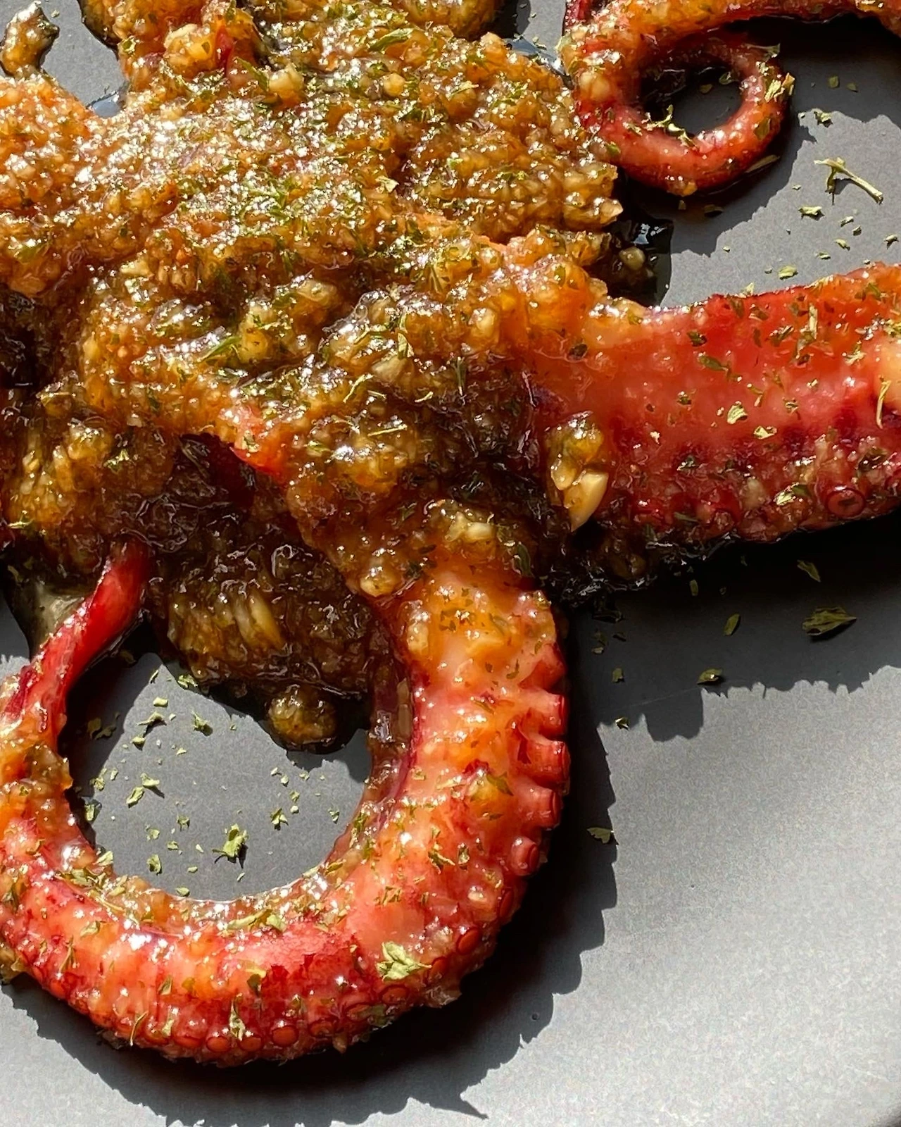 손님들에게 대접할 때마다 탄성과 박수갈채를 받는 메뉴가 있다. 그 이름은 바로 허니 버터 문어 스테이크. 웅장한 문어 다리에 챠르르르 꿀의 윤기가 흐르는 비주얼과 달큰하고 고소한 마늘 버터의 향으로 등장부터 좌중을 압도하는 음식인 것에 비해 레시피가 워낙 간단하여 적은 품으로 있어 보이는 메뉴 레시피를 알려드리는 <잇어빌리티> 워크숍의 대표 메뉴로 자리매김한 메뉴다. 실제로 333번의 집들이 중 절반 이상은 이 메뉴를 대접했을 정도로 집에 놀러 오시는 손님들에게도 자주 대접하는 음식인데, 신기하게도 맛을 본 손님들이 종종 같은 질문을 주시곤 한다.