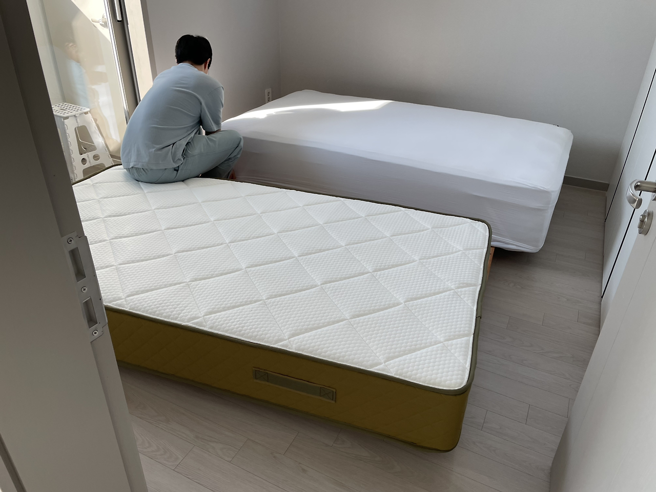 먼저 침대를 사기로 했다. 이번에 남편 건강검진에서 디스크 탈출증이 있다는 진단을 받았다. 원래 내가 먼저 디스크 팽윤증이 있어서 자세가 안 좋을 때 남편에게 놀리는 듯한 잔소리 듣고 했다. 남편은 뭐가 더 안 좋은 건지 궁금하다며 검색해 보더니, 탈출증이 더 심한 거라는 소리에 잔소리가 쏙 들어갔다. 그러곤 허리에 좋은 편한 침대를 찾더니 며칠 전 침대가 도착했다.