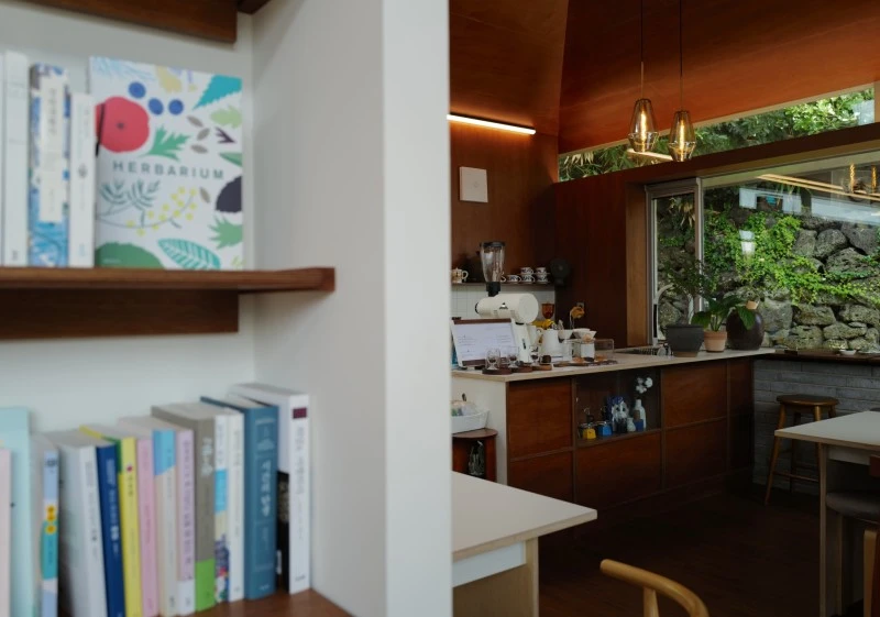 책장 한편에 놓인 그림책을 보다가 말고 커다란 창가로 다가갔다. 창밖에는 아기 고양이들이 장난을 치고 있었는데, 따스한 햇살과 제주의 돌담이 어우러져 꽤 영화의 한 장면 같아졌다. 으르렁거리듯 물고 뜯는 아기 고양이들의 움직임에도 아랑곳하지 않고 낮잠을 자는 어른 고양이가 부러워졌다. 이 공간에서 이룬 릴렉스한 시간을 도시에서도 이어가야겠다고 다짐했다.