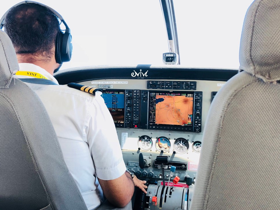 하와이와 스페인 여행 중에 프로펠러가 달린 경비행기를 타본 적이 있지만 이렇게 작은 사이즈는 처음이었다. 딱 10명이 탈 수 있는 크기였다. 1-2 좌석 배치로 세줄 그리고 조종사 옆 좌석. 뭇 남성들은 조종사 옆에 앉을 수 없는지 직접 질문을 하기도 했다. 그도 그럴 것이, 앞자리에 앉으면 자동차를 타고 하늘을 나는 기분을 제대로 만끽할 수 있을 터였다.