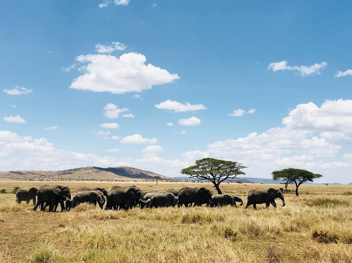 이번엔 코끼리였다. 코끼리 처음 보냐고? 물론 동물원에서 봤다. 태국에서도 봤고, 코끼리 코를 만져본 적도 있지만 이렇게 광활한 초원을 배경으로 코끼리 무리가 이동하는 모습은 당연히 처음이었다.