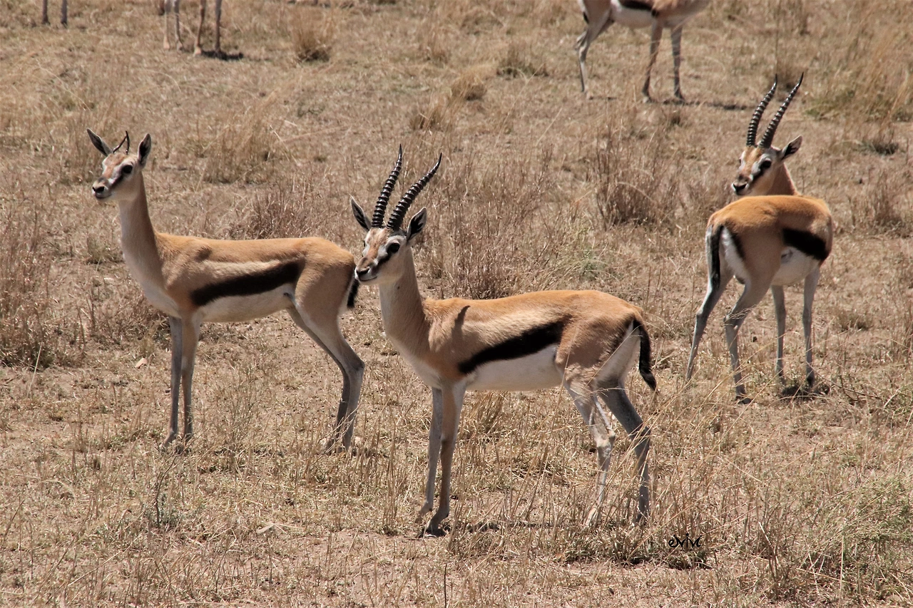 사슴과에 속하는 톰슨가젤은 양쪽으로 갈라지는 멋진 뿔을 가지고 있으며 시속 75km의 달리기 실력을 자랑한다. 평화롭게 풀을 뜯어먹고 있을 땐 강아지처럼 살랑살랑 꼬리를 흔드는데, 가까이서 보면 꼬리 흔드는 속도가 꽤 빨라서 앙증맞기 그지없다. 나무 아래 그늘에서 휴식을 취하는 무리를 멀리서 바라보니 한 폭의 그림이 따로 없다. 차가 다니는 도로를 건너며 재빠르게 몸을 움직이는 모습은 요염하게 느껴질 정도였다.