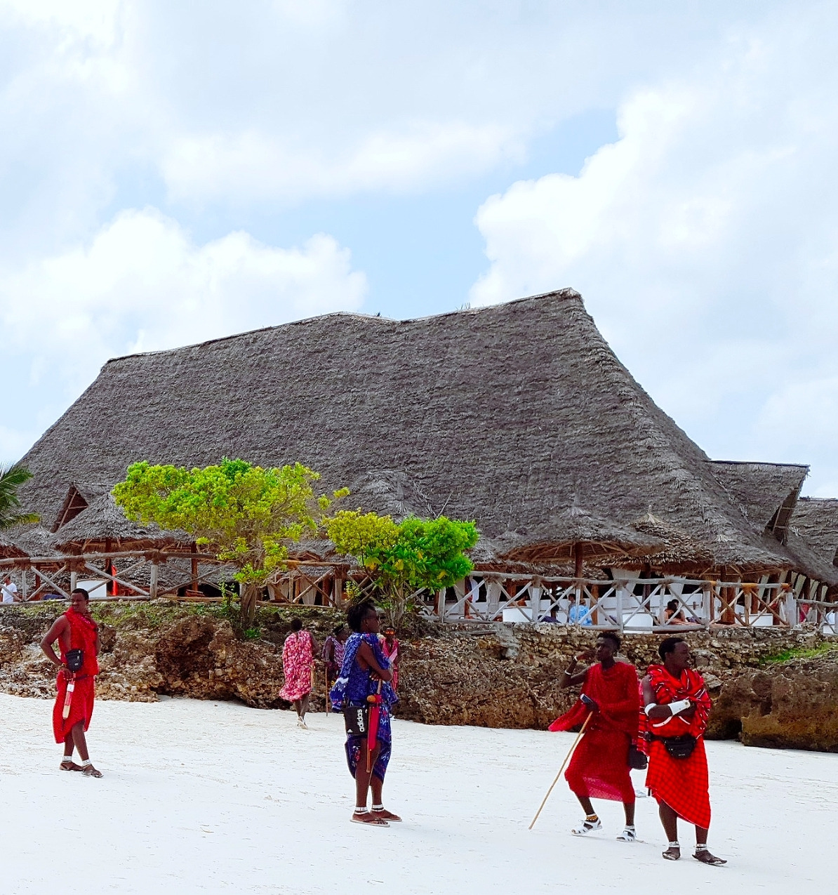 숙소 뒤쪽으로 나는 골목길을 걷다가 해변으로 통하는 작은 통로를 발견했다. 급격한 햇살이 쏟아지던 찰나였다. 기다렸다는 듯 전통의상을 입은 마사이족(나중에 알고 보니 그들 일부만이 진짜 마사이족이었다)들이 "잠보! (Jambo!)" 하고 인사했다.