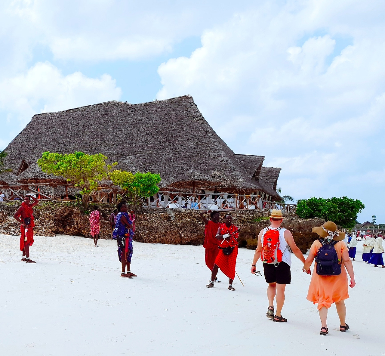 일을 하는 사람들을 제외하면 그들 대부분은 영어를 할 줄 모른다. 그나마 이렇게 바닷가에 나와 호객행위라도 하려는 사람들은 돈을 벌 구실이 있다는 뜻이다. 대부분 스노클링이나 선셋 세일링 같은 해양 액티비티를 권한다. 여자들은 타투와 마사지를 권하기도 한다. 그리고 '진짜' 마사이족들은 자신들만의 전통적인 방법으로 만든 액세서리와 공예품들을 팔고 있다. 사진을 함께 찍어준 후에 돈을 요구하기도 한다. 어린이들은 사진 찍히는 것을 싫어하기도 하였다.