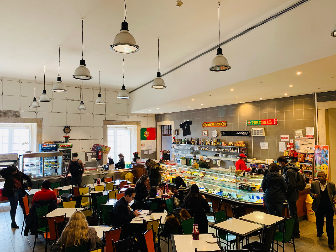 때마침 점심시간이었다. 도서관 탐방의 시간은 아쉽지만 10분으로 끝나고 말았다. 이왕 대학교에 왔으니 학생 식당을 이용해야겠다는 생각이 스쳤다. 식당은 두 군데가 있었던 것 같다. 가까운 곳으로 들어가니 반계단 아래로 내려간 곳에 정겨운 풍경이 펼쳐져 있었다. 포르투갈을 상징하는 국기 등의 굿즈들이 식당 한 구석을 장식하고 있었다. 식당에서 토론이나 공부를 한다고 두꺼운 책을 펼쳐둔 학생들은 지구 상 곳곳 어디에나 있나 보다.