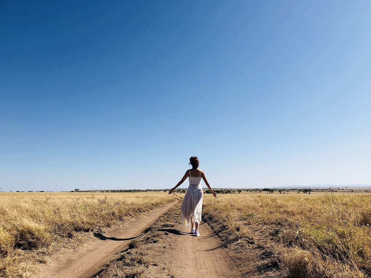 사실 오늘은 조금 특별한 날이고, 무슨 날이냐면 그건 비밀이다. 탄자니아라는 낯선 곳에 여행을 떠나와 야심 차게 계획했던 것 중 하나는 동물 친구들을 만나는 도중 초원 위에 직접 내려서서 사진을 찍겠다는 것이었다. 한가로운 한 낮, 세렝게티 초원 한가운데 그 어디쯤에서 우릴 태운 차는 멈춰 섰고, 나는 금세 지우언니가 선물해준 드레스를 꺼내 (갈아) 입었다.