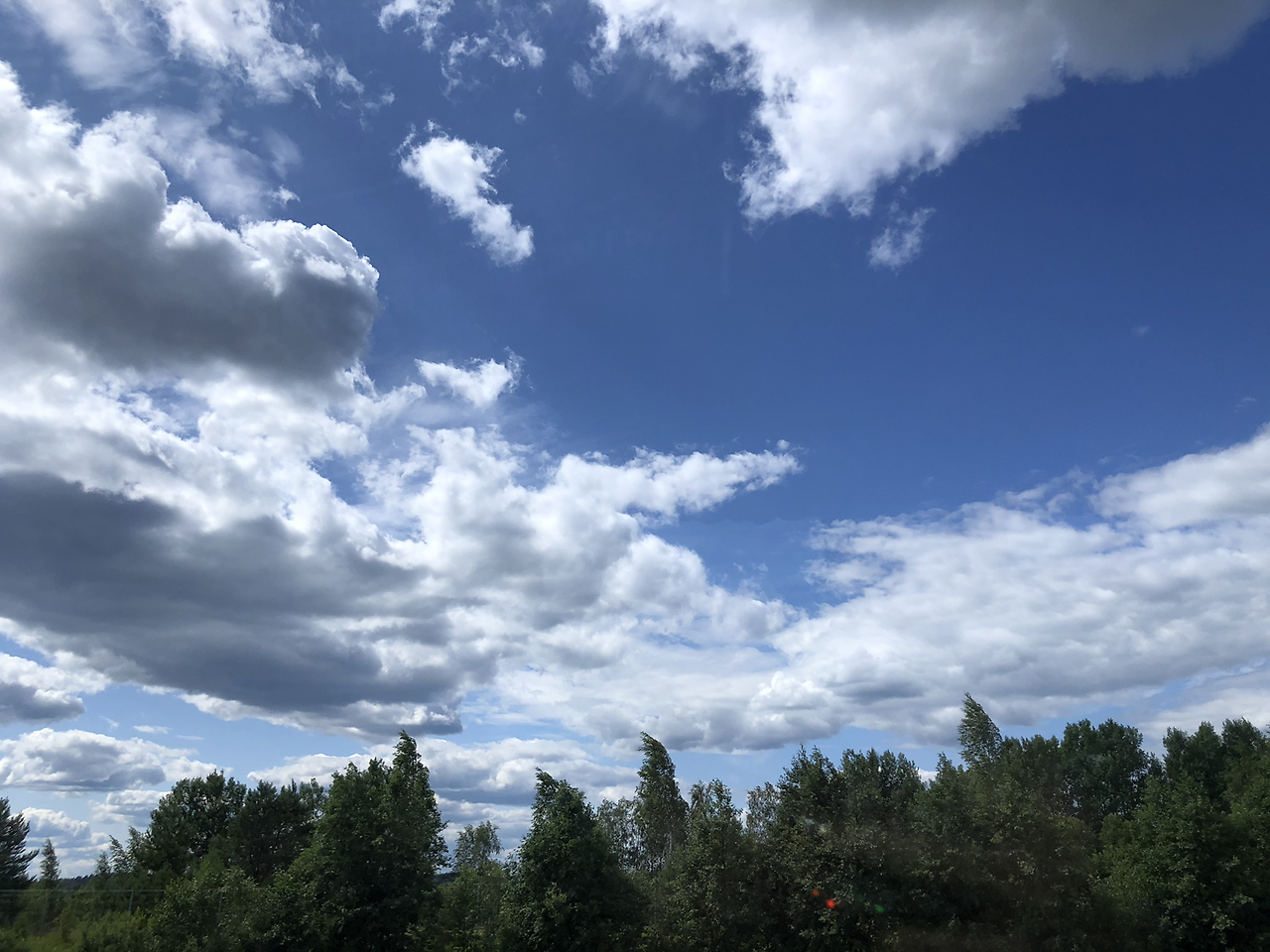 양쪽에 늘어선 키 큰 침엽수림 사이를 내달리는 버스 안이다. 유난히 높은 하늘을 가득 메운 뭉게구름을 무엇에 비유하면 좋을까...