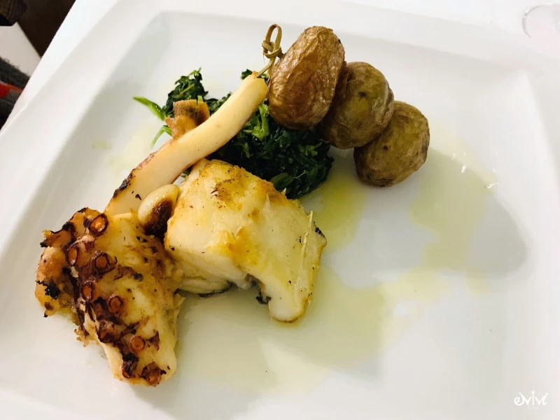 포르투갈에서 매일 먹는 문어요리는 오늘도 예외가 없다. 구운 대구와 오징어, 야채와 감자를 곁들여 식감을 달리하며 먹는 식사는 더 재미있다.