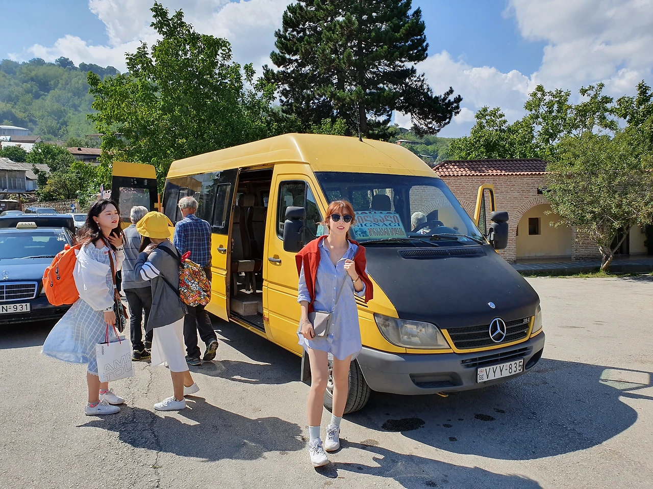 이 ‘탈 것’은 마슈로카 (마쉬루트카, Marshrutka)라고 불리는 조지아 주요 교통수단이다. 20명이 넘는 승객을 꽉꽉 채우고 나서야 운전기사는 시동을 건다. 트빌리시, 삼고리(Samgori) 역 터미널에서 두 시간쯤 달려 도착하는 곳을 운전기사 재량에 따라 한 시간이 걸리기도 한단다. (조지아 운전기사들은 다 베스트 드라이버라고 한다.)