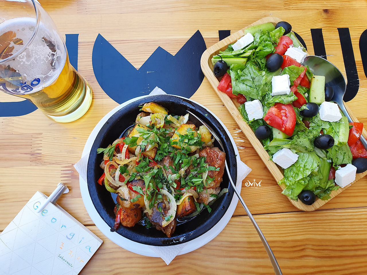 두 번째 사진인 Ojakhuri (오차쿠리, ლ12) 역시 빼놓을 수 없는 조지아 대표음식 중 하나이다. 돼지고기와 양파 등을 화이트 와인과 함께 숙성시켰다가 감자와 함께 요리한다. 우리나라 돼지갈비찜과 비슷한 느낌? 아쉽게도 카페 라일라에서는 매우 질긴 고기가 나와 실패, 아래 식당에서 다시 시켜보았다.