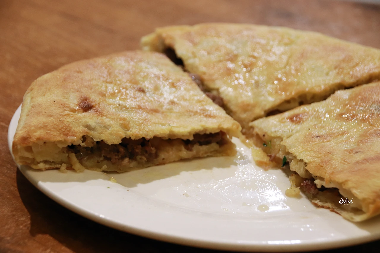 메스티아가 포함된 지역 즉, 스반(Svan) 지역의 전통음식인 Kubdari (쿠브다리, Georgian: კუბდარი, Svan: კუბედ, ლ8)를 먼저 주문했다. 조지아 친구가 '메스티아에 가면 쿠브다리는 꼭 먹어보라'라고 신신당부한 것을 기억해냈다. 우쉬굴리 포스팅에서 했던 Khachapuri (하차푸리)는 치즈가 쭉쭉 늘어나는 치즈 피자인 것에 비해, 쿠브다리는 소고기 조각을 가득 담고 있다. 빵 부분은 남길 수밖에 없다.