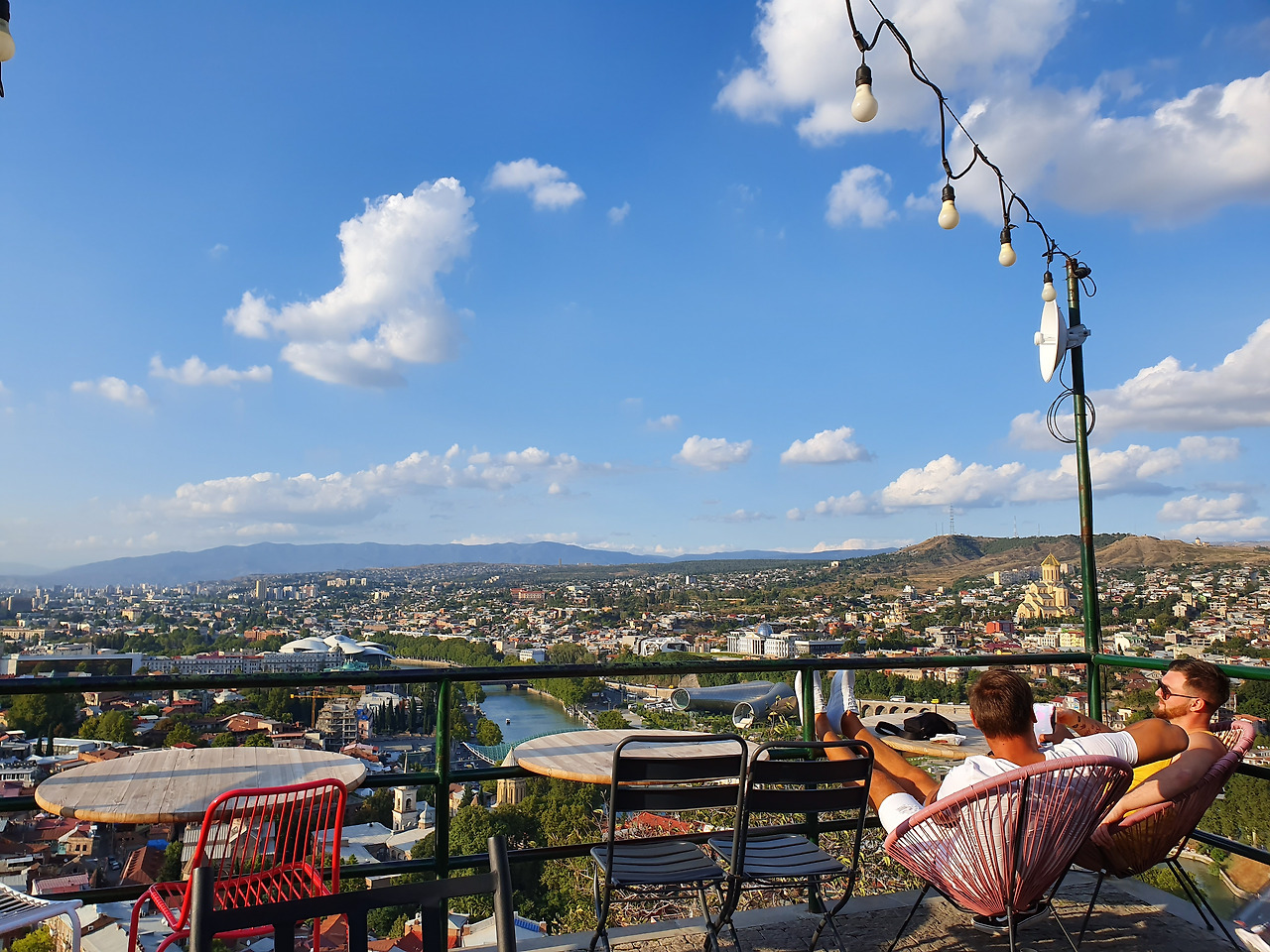 길게 늘어선 성벽이 양갈래로 갈라져있다. 아직 반밖에 둘러보지 않았지만 '우리는 또 다른 날 걸어올 거니까, 지금은 그냥 쉬고 싶어.'라고 생각했다. 뷰(view) 맛집을 그냥 지나칠 수는 없잖아요 (대신 view tax가 붙는다). 우연인지 케이블카에 함께 타고 올라왔던 힙한 조지아 아이들이 이미 한 자리를 차지하고 있다. 우리나라 남산 타워 같은 곳일 것 같다, 이곳은. 친구들과, 사랑하는 사람과 혹은 나 혼자 찾곤 하는 모두의 장소 말이다.
