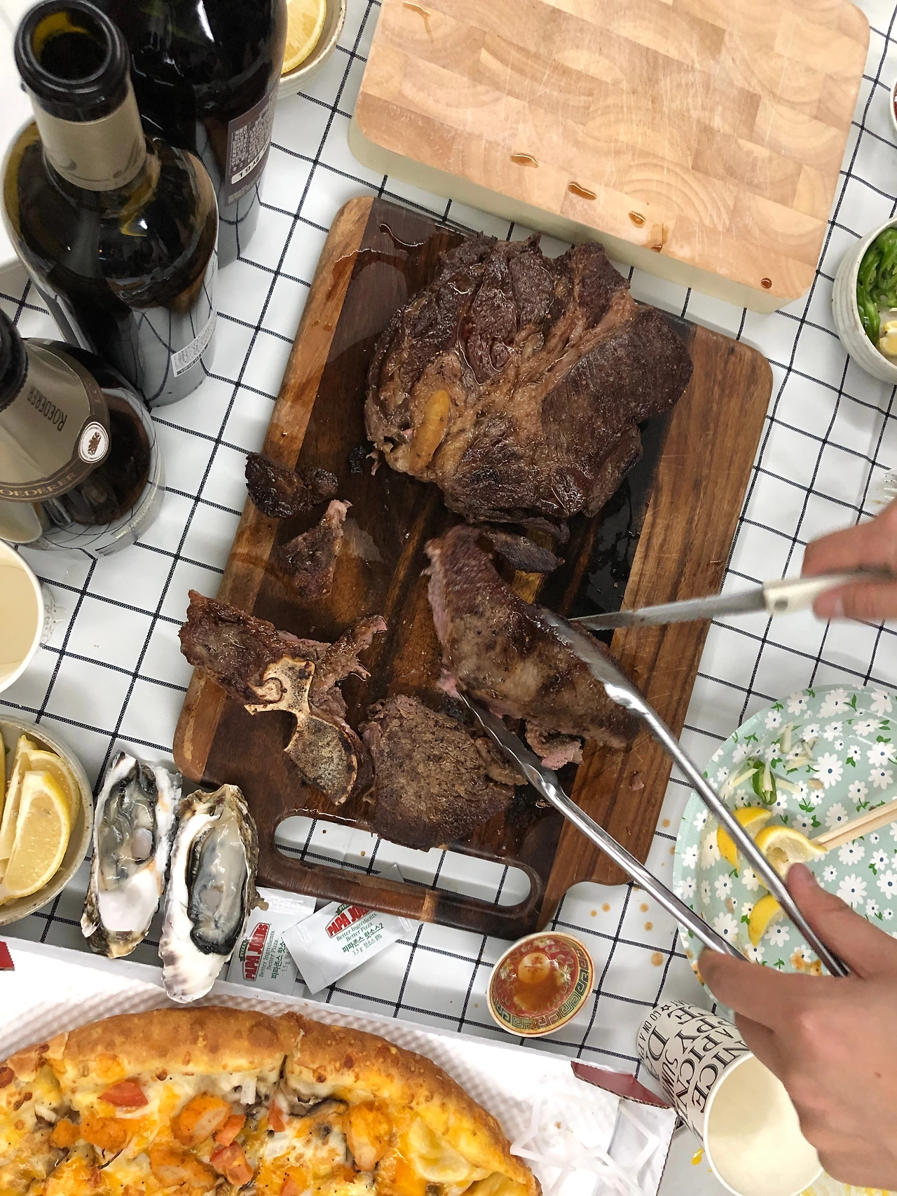 예전에 꼬망스네가 민박집을 할 때(9월부터 까사 36.5로 바뀌면서 사장님도 바뀌었어) 알게 된 동생들이 올 10월과 11월에 쿠바에 놀러 와서 이것저것 좀 도와줬거든. 그랬더니 이번에 내가 멕시티에 왔다고 동생들 4명이 민박집에 나를 보러 온 거야. 성격 좋은 두 미녀 사장님들이랑 코스트코에서 최상급 쇠고기와 연어와 아스파라거스를 사 와서 파티를 했어. 요리를 기똥차게 잘하는 사장님이 처음으로 구워 봤다는 스테이크와 연어초밥은 정말이지 입이 넣자마자 녹아버려서 지금도 계속 생각이 맴돌아.