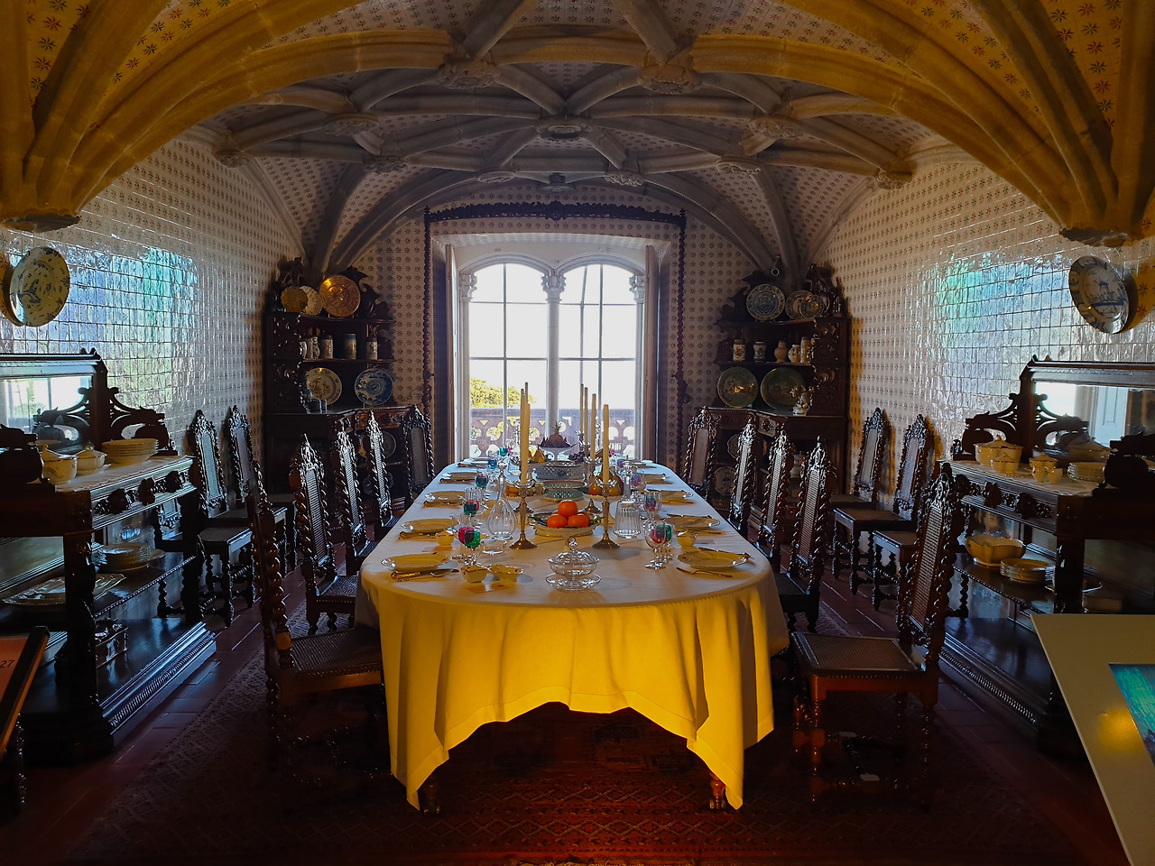 신트라성 내부는 박물관이라고 해도 손색이 없을 정도로 왕족의 생활 방식을 그대로 살려놓았다. 역사적 유물 등에 큰 관심을 보이지 않는 편이지만 페냐 성은 달랐다. 성벽을 장식하는 아줄레주 타일, 10개 남짓 있는 왕족의 방, 그리고 그 방을 장식하는 고가구의 디테일, 스테인글라스 창문, 샹들리에와 크고 작은 도자기 등의 인테리어의 화려함에 마음을 빼앗기고 말았으니.