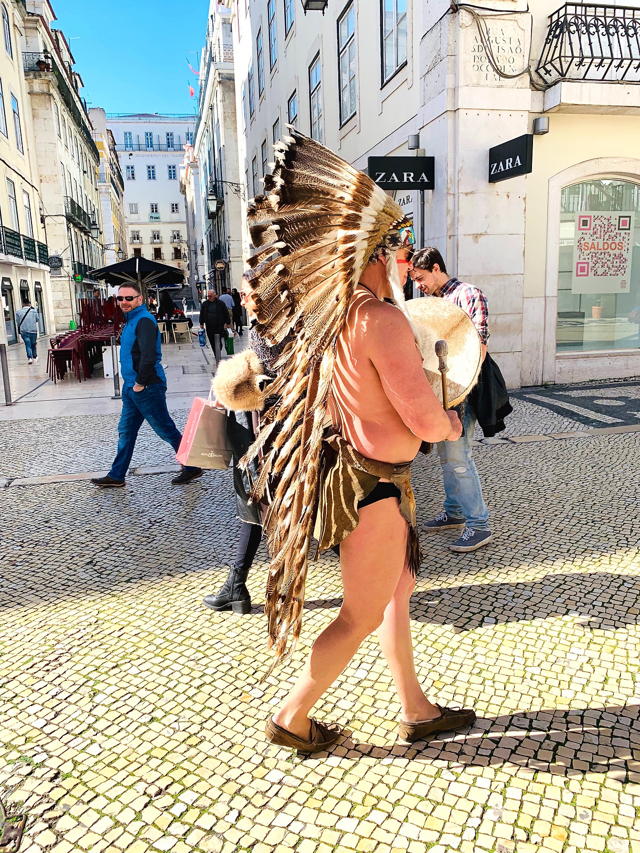 아침 식사를 하고 나오며 맞는 차가운 바람과 대조적인 햇살에 다시 한번 정신을 못 차린다. 7일짜리 리스보아 카드(Lisboa Card, 트램과 버스를 탈 수 있는 교통카드)를 사려면 호시우 광장 근처에 있는 Tourist shop으로 가면 되는데, 발걸음은 그 반대인 코르메시우 광장(Praça do Comércio) 쪽으로 향하고 있었다. '앗'하고 정신 차렸을 때는 이미 광장 게이트 가까이 다다랐을 때였다. 그때 발견한 어떤 이의 거리 퍼포먼스란!