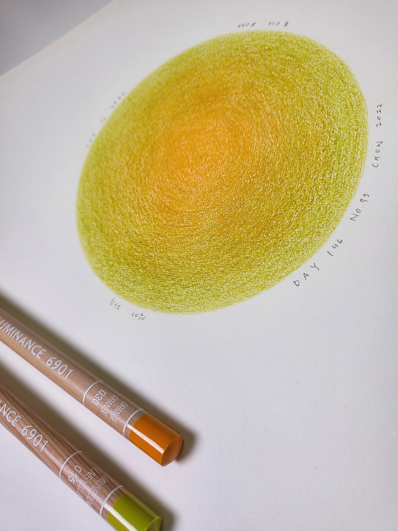 Day 146, No.75, 전이린, 종이 위에 색연필, 21cm x 29.5cm, 2022