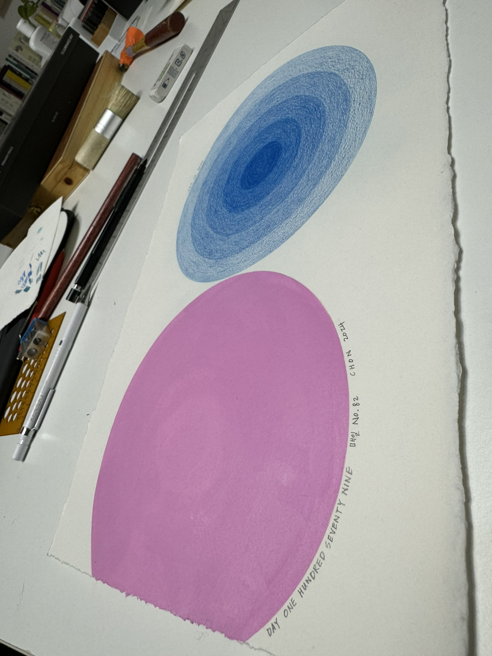 Day One Hundred Seventy Nine, 매일 No. 82, 전이린, 종이 위에 아크릴 컬러와 색연필, 21cm x 29.5cm, 2024