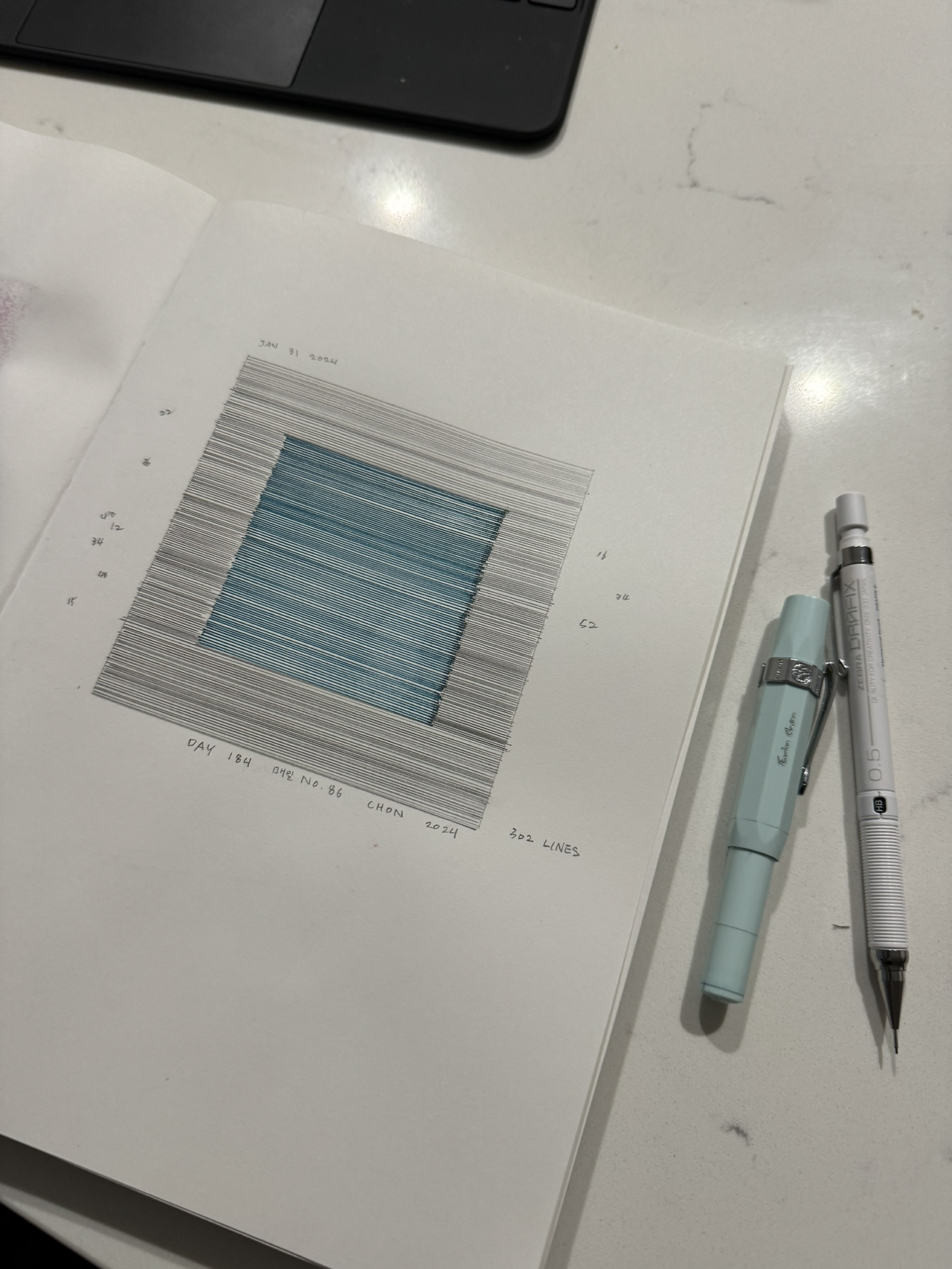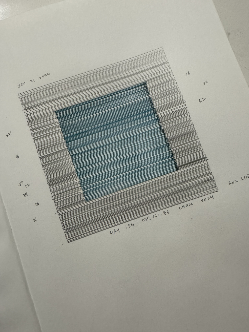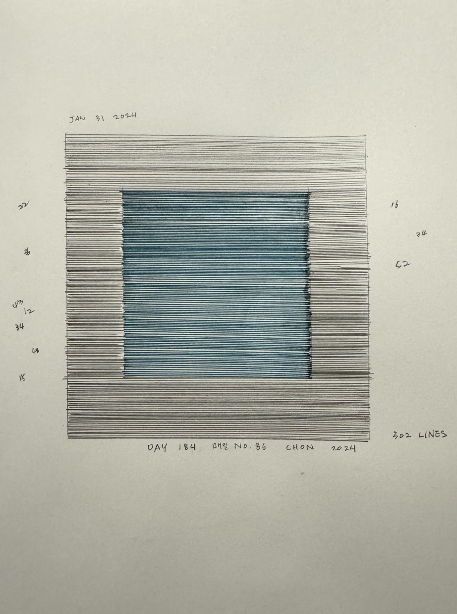 Day One Hundred Eight Four. 매일 No. 86, 전이린, 종이 위헤 잉크, 17cm x 25cm, 2024