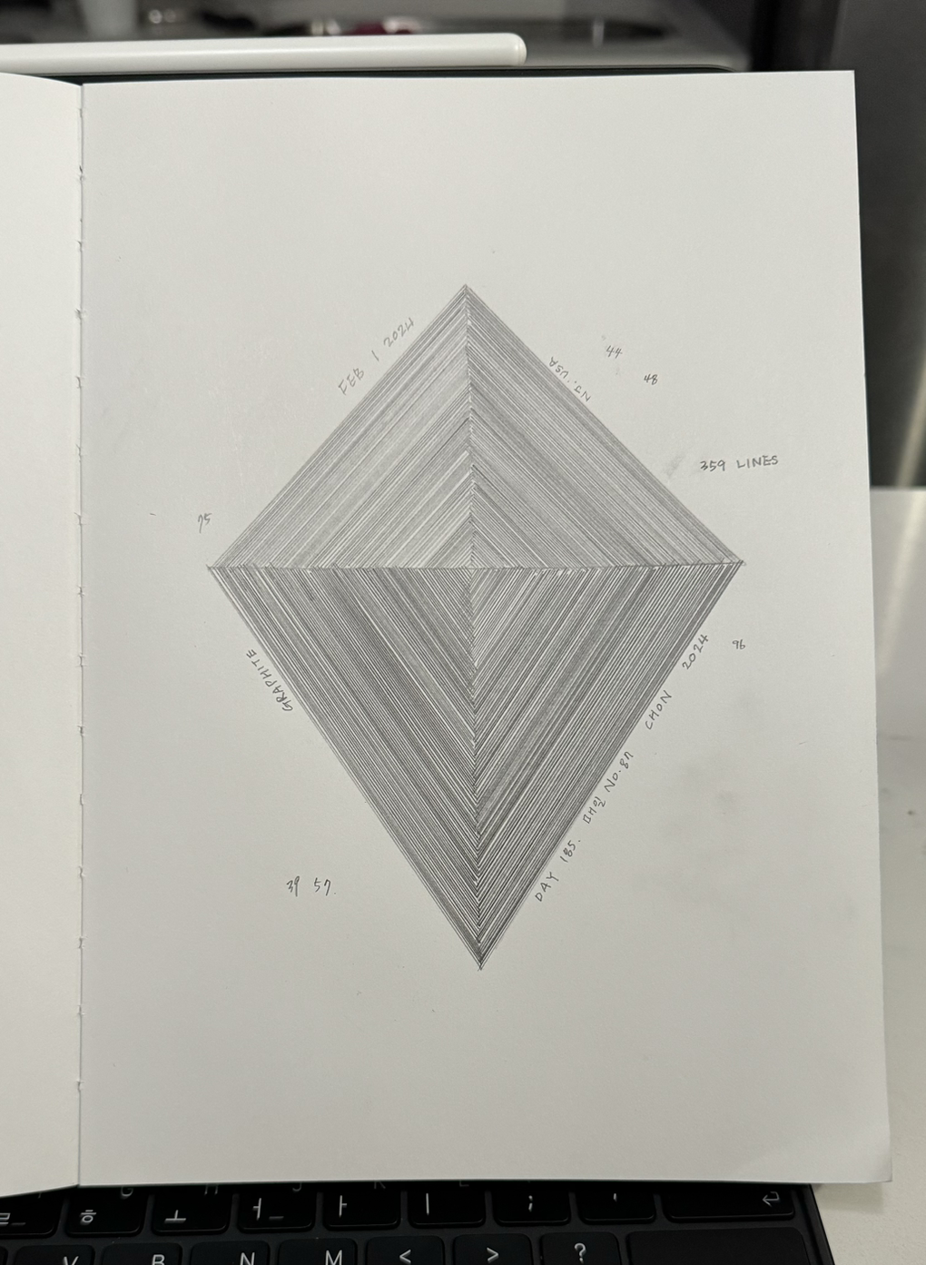Day One Hundred Eighty Five, 매일 No. 87, 전이린, 종이 위에 연필, 17cm x 25 cm, 2024